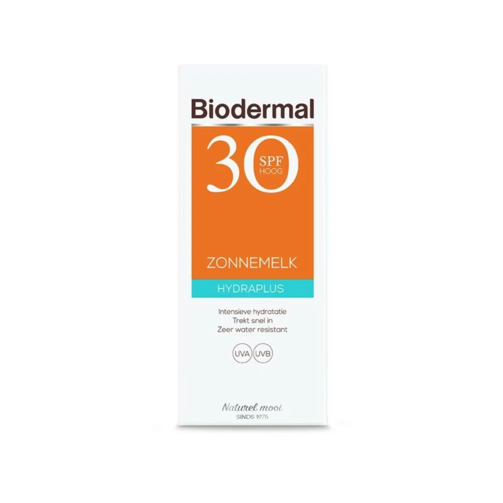 Biodermal Hydraplus Zonnemelk SPF 30Biodermal Hydraplus Zonnemelk SPF 30 met geavanceerde en fotostabiele UVA/UVB-filters voor onmiddellijke bescherming tegen schadelijke effecten van zonnestraling. Bevat het unieke Biodermal Triple Moist Complex. Dit biedt direct intensieve en langdurige hydratatie tot diep in de huid. De hoogwaardige combinatie UVA & UVB filters beschermt de huid onmiddellijk tegen zonnestraling. Bevat uniek Triple Moist Complex. Drie essentiële vocht inbrengende ingr