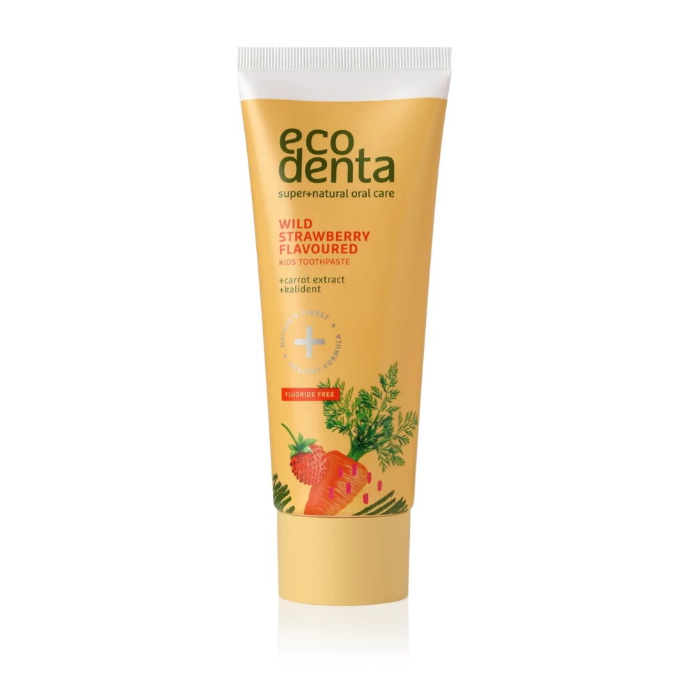 Ecodenta Tandpasta Kids Wilde Aardbei met Wortel & KalidentECODENTA Kindertandpasta met wilde aardbei en wortel is een natuurlijke tandpasta zonder fluoride en vrij van sterke schuurmiddelen. De tandpasta is speciaal ontwikkeld voor kinderen en bevat een frisse aardbeiensmaak. Kindertanden worden op een zachte wijze gereinigd, verzorgd en beschermd. Het toegevoegde extract van wortel versterkt het glazuur, vermindert de tandgevoeligheid en kans op tandbederf. De innovatieve formule met Kalid