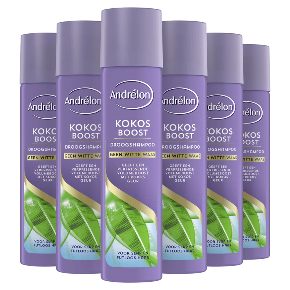 Andrelon Kokos Boost Droogshampoo 245 mlAndrélon droogshampoo is dé oplossing om je haar een verfrissende natuurlijke boost te geven, wanneer je maar wilt en waar je ook bent!Een frisse look zonder je haren te wassenIn een handomdraai is je haar weer luchtig en gemakkelijk te stylenVerrijkt met een mix van cactus- en kokoswaterMet een heerlijke kokos geurSpeciaal ontwikkeld voor slap en futloos haarGemakkelijk in gebruikOm zonder je haren te wassen toch een frisse look te krijgen,