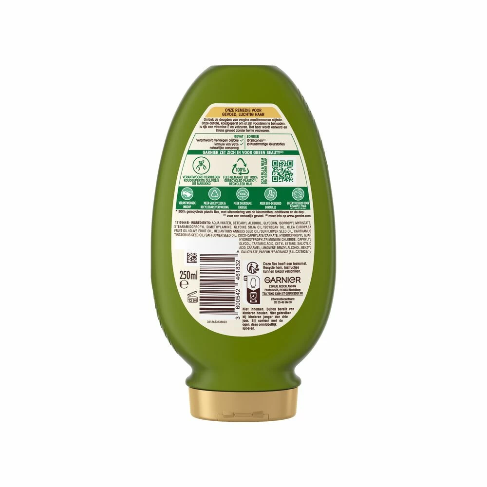 Garnier Loving Blends Mythische Olijf ConditionerLoving Blends Mythische Olijven Conditioner van 98% natuurlijke oorsprong is een voedende conditioner die droog haar ontwart en intens voedt zonder te verzwaren. Speciaal voor uitgedroogd haar heeft Garnier Loving Blends een formule samengesteld met Olijfolie. Een intense voeding die het haar herstelt tot in de punten, zonder dat het zwaar wordt. Je haar geeft een intens zacht gevoel en wordt makkelijker om in model te brengen met als eindresultaa