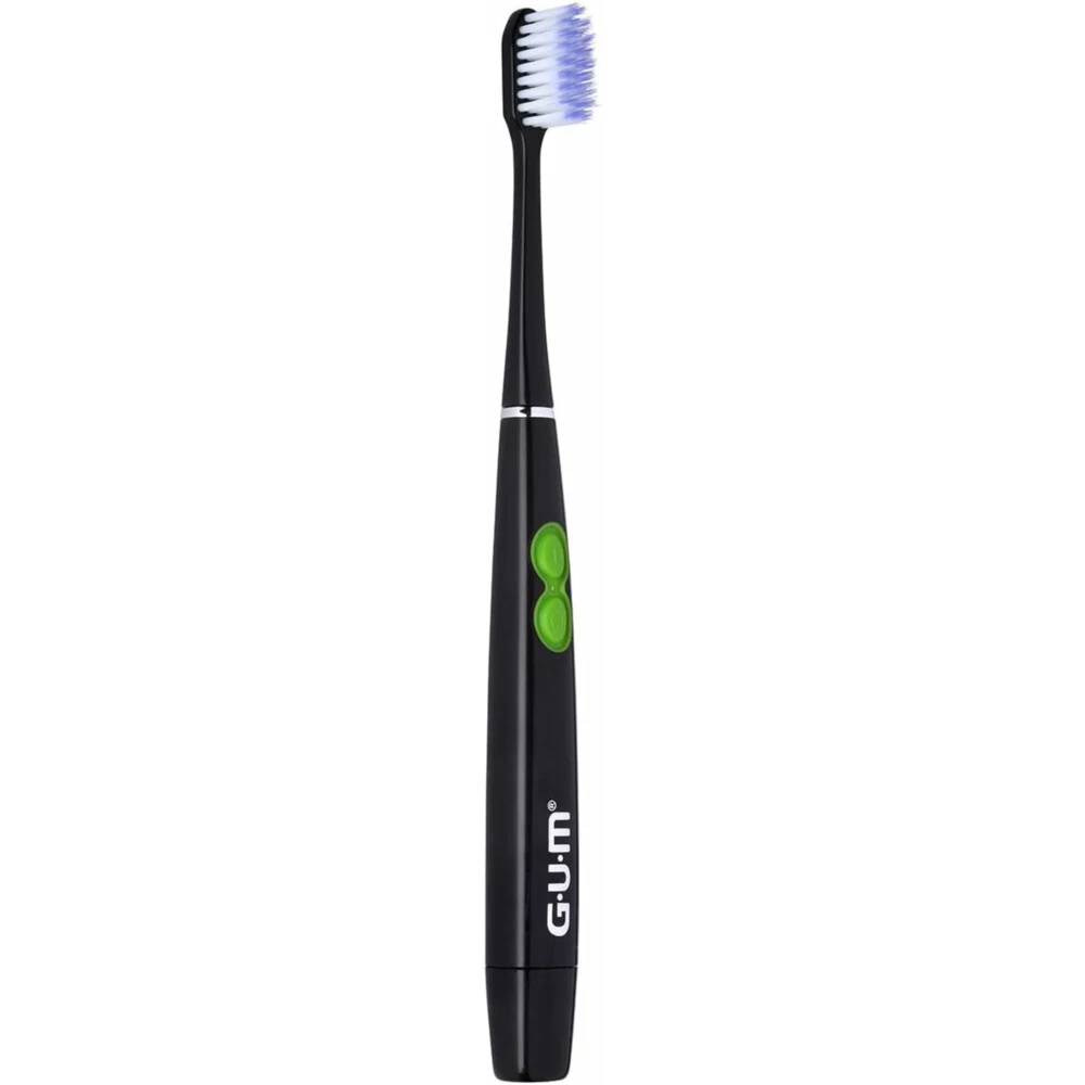 GUM Elektrische Tandenborstel Sonic Daily ZwartDe GUM ActiVital Elektrische tandenborstel Black is een sonische tandenbostel die op batterijen werkt. Deze zwarte tandenborstel maakt door middel van 12.000 bewegingen per minuut op milde wijze de tanden en kiezen schoon. De trilkracht zorgt voor een betere reiniging dan een normale handtandenborstel. De borstelharen zijn taps toelopend en zijn daar door 50% effectiever in het bereiken van de ruimtes tussen de tanden en kiezen. Er word dieper