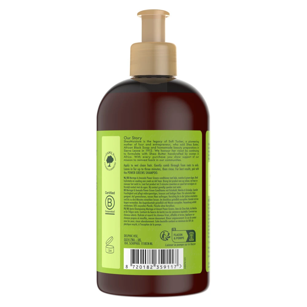 SheaMoisture Moringa & Avocado Power Greens ConditionerDe SheaMoisture Moringa & Avocado Power Greens Conditioner, verrijkt met sheaboter, boerenkool, groene algen en matcha, voedt en verzacht je haar.SheaMoisture Moringa & Avocado Power Greens Conditioner hydrateert je haarConditioner met moringa, avocado, boerenkool, groene algen en matchaHelpt bij het hydrateren, ontwarren en verzachten van je haarMaakt broos, dof en ondervoed krullend haar beter handelbaarMet natuurlijke ingredi&